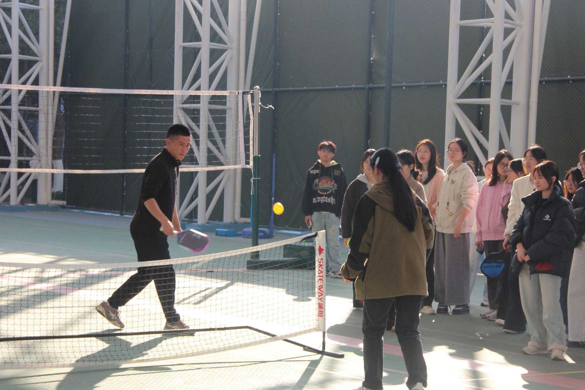 讲座结束后,全体学生在专业老师的带领下前往操场进行实操。同学们在挥拍击球间感受匹克球的灵动魅力,在奔跑协作中尽享运动乐趣,沉浸式体验这项运动的独特风采。活动通过理论讲解结合实践体验的形式,进一步丰富校园全民健身内容,助力学生拓宽运动视野、培养运动习惯。