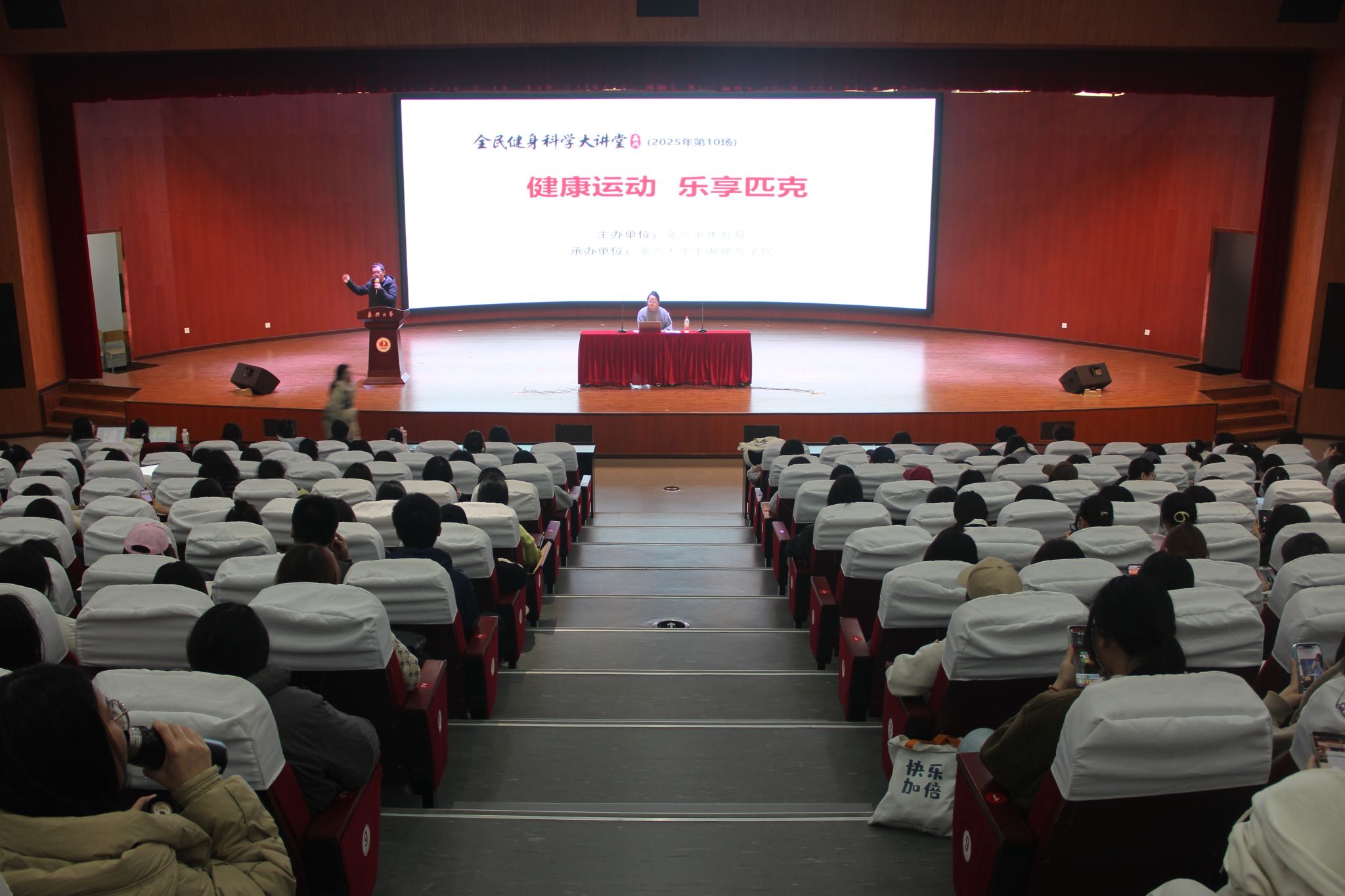11月30日下午,学院“健康运动 乐享匹克”科学健身大讲堂于平湖校区行政楼报告厅举行,体育教育系王海棠老师主讲,200余名学生参与。
