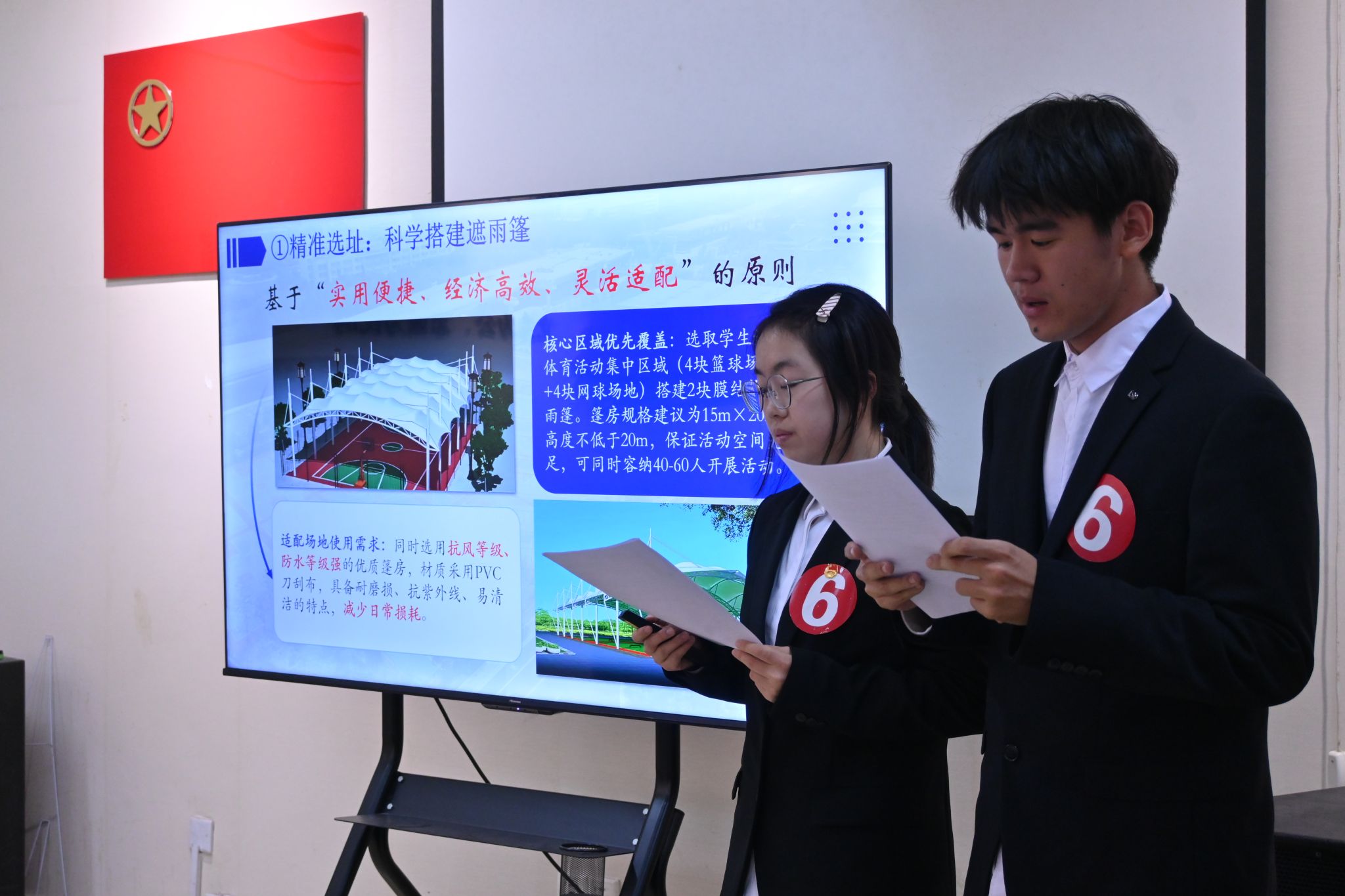 在本次大赛中,我院学生积极响应,初赛共征集到83份高质量提案,涵盖学习氛围营造和教学设施改进两大维度。决赛现场,“嘉梁筑韵队”围绕勤慎书院打造,阐述兼具人文温度与系统思维的建设构想。“嘉倍安心团队”聚焦室外运动场地使用痛点,提出兼具实用性与可行性的室外场地膜结构改造计划方案,实现师生户外活动“晴雨无阻”。