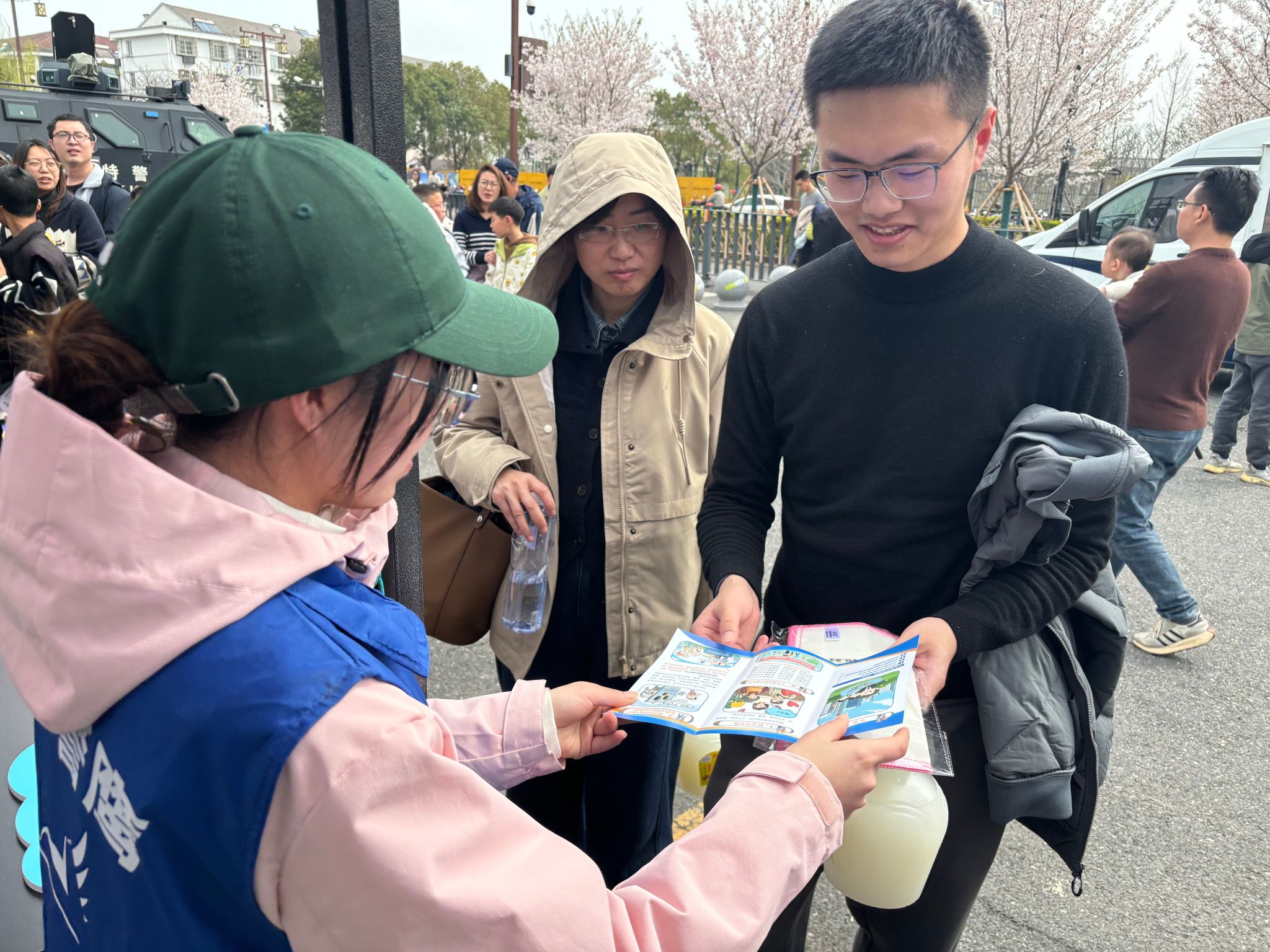 活动现场设置了110模拟报警、禁毒科普、反邪宣传、电信反诈等多个主题宣传摊位。活动中志愿者耐心引导现场秩序、细致协助打卡互动、生动讲解活动规则与安全知识,主动为学生及家长答疑解惑,以饱满的热情和认真负责的态度保障活动有序推进,有效激发了学生的参与热情,充分展现了青年学子的责任担当与良好风貌。