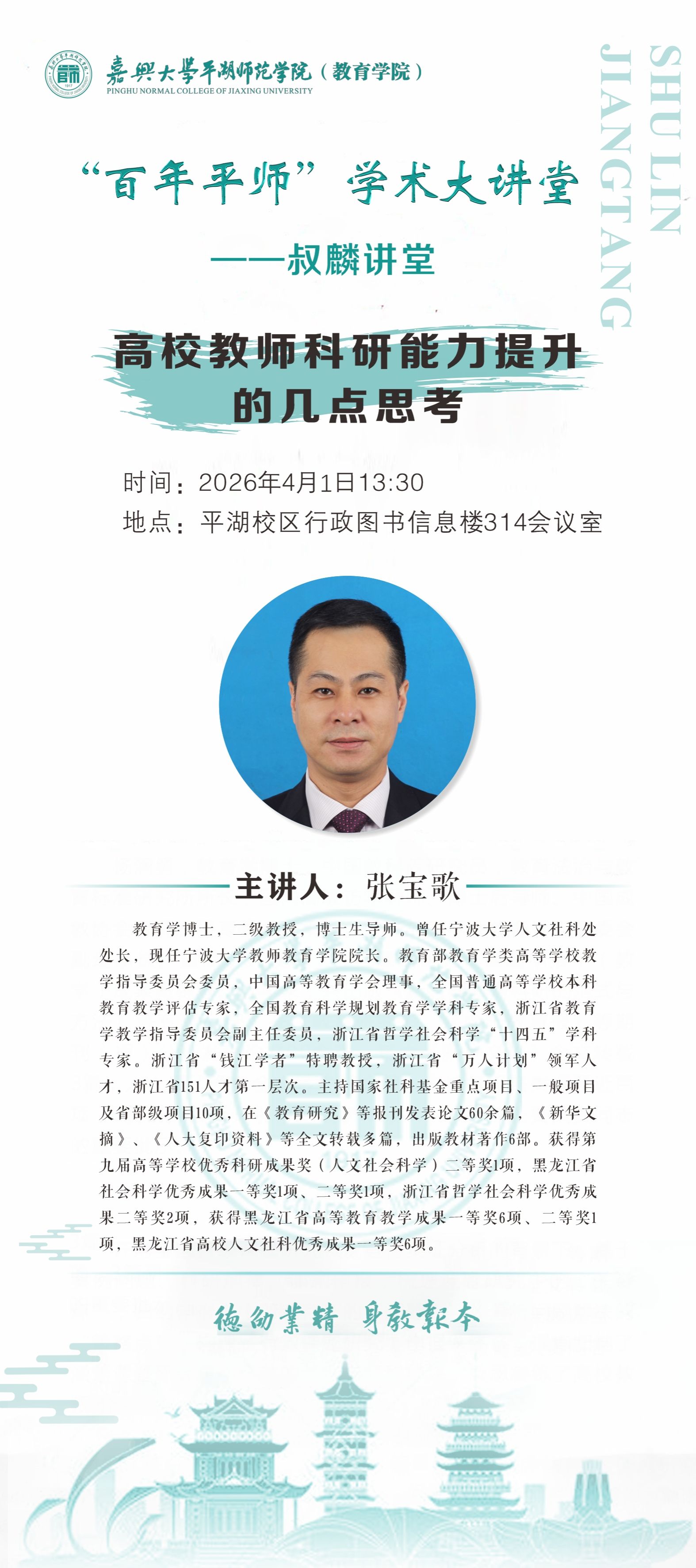 “百年平师”学术大讲堂——叔麟讲堂活动预告:高校教师科研能力提升的几点思考