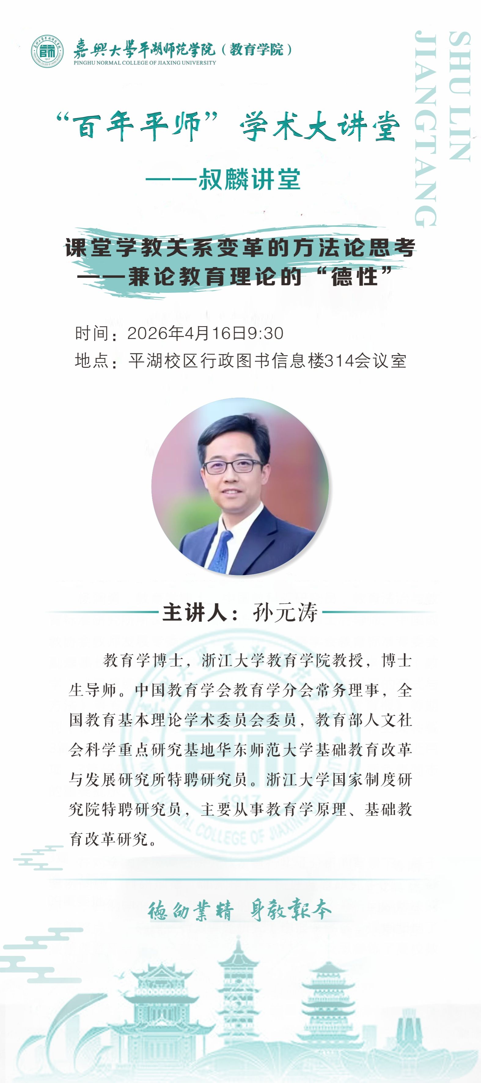 “百年平师”学术大讲堂——叔麟讲堂活动预告:课堂学教关系变革的方法论思考——兼论教育理论的“德性”