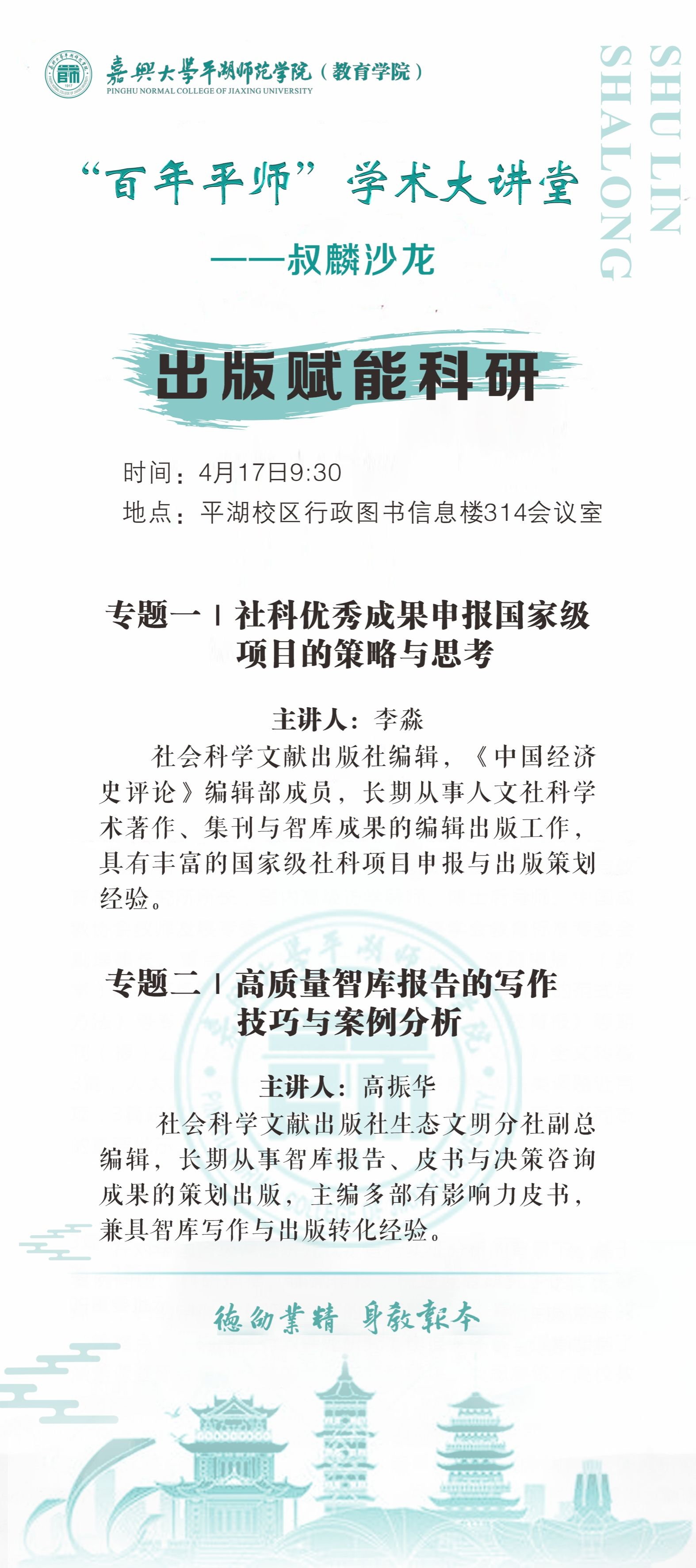 “百年平师”学术大讲堂——叔麟沙龙活动预告:出版赋能科研