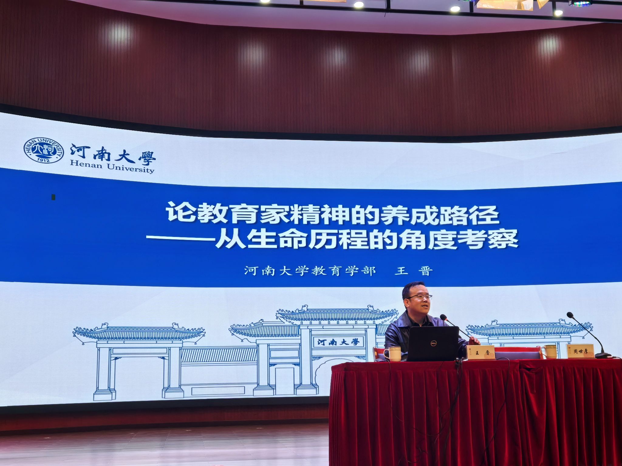 讲座面向学院一二年级本科生、硕士研究生及全体教师,主题为《论教育家精神的养成路径——从生命历程的角度考察》,参与听众有400余人。王晋教授从中西教育典籍与教师职业起源对比入手,明确教师“立德启智、赋能润心”的核心职责,系统阐释新时代教育家精神六大核心要义。他结合陶行知、张桂梅、于漪等十余位古今教育家案例,拆解教育家精神养成的三大阶段:思想形成、快速成长、卓越创新,指出博览群书、勤于反思、勇于实践是卓越成长的核心要素。