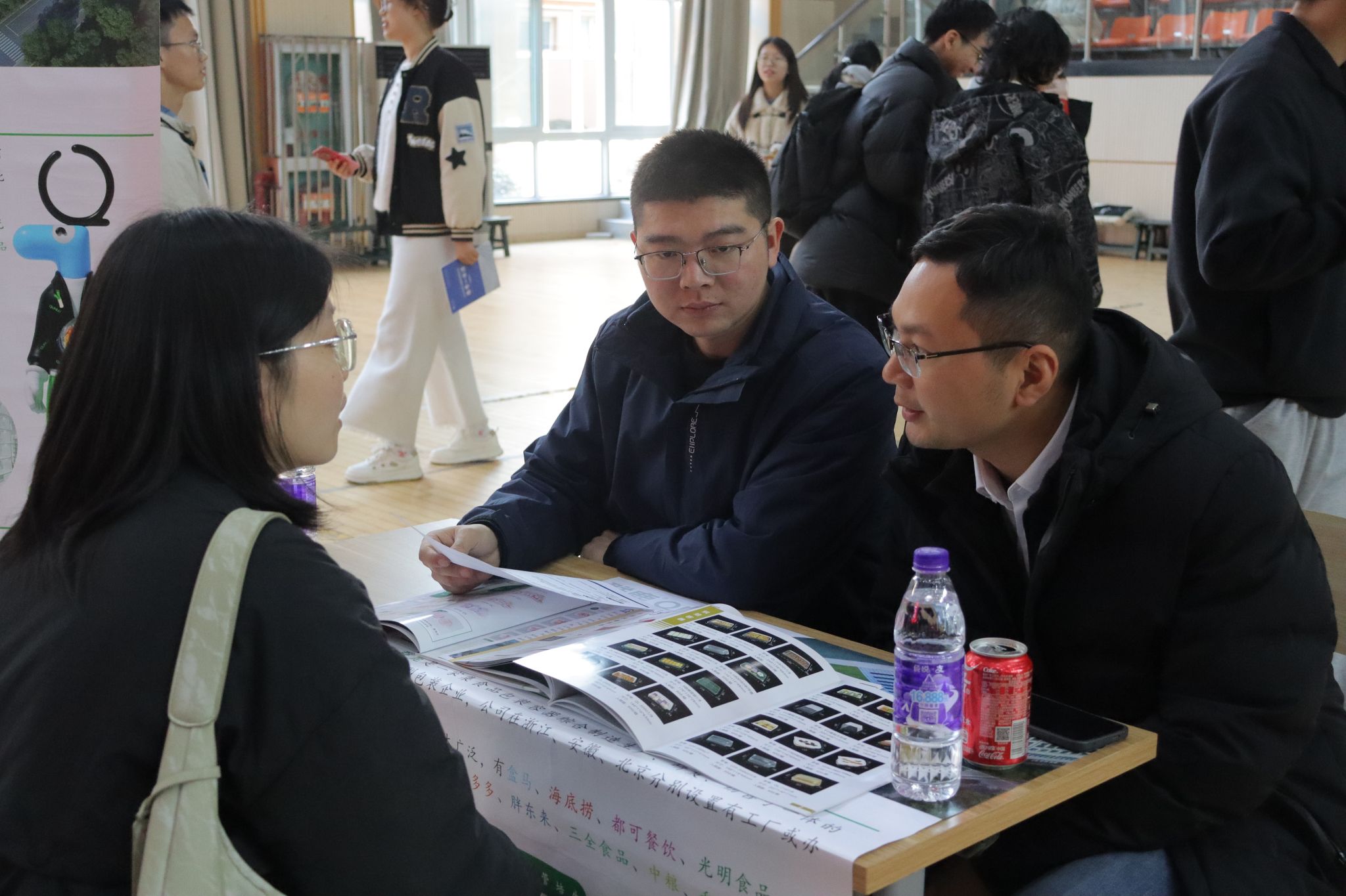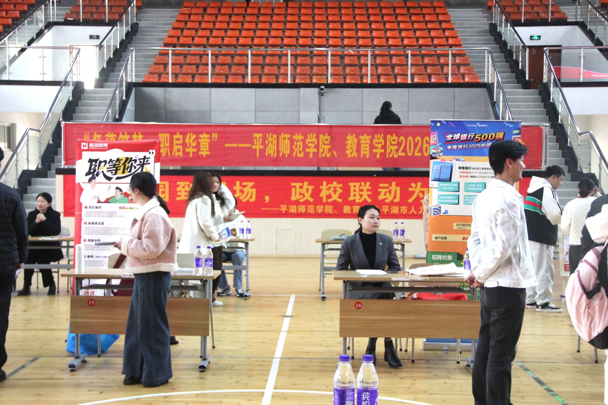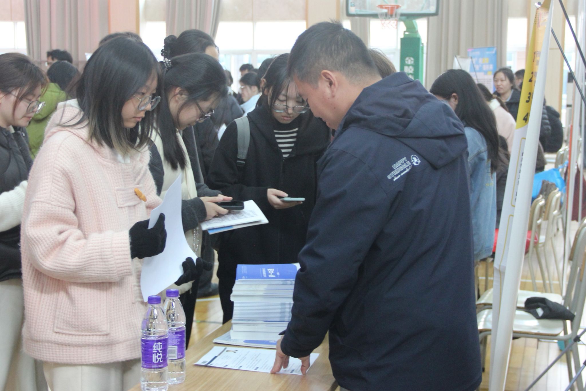 11月20日下午,学院联合平湖市人力资源和社会保障局顺利举办“冬蕴筑梦,职启华章”2026届毕业生双选会。本次双选会吸引24家优质企业,涵盖教育服务、金融商贸、智能制造、外贸物流等多个领域,共计500余名同学到场咨询了解,现场互动踊跃、气氛热烈。