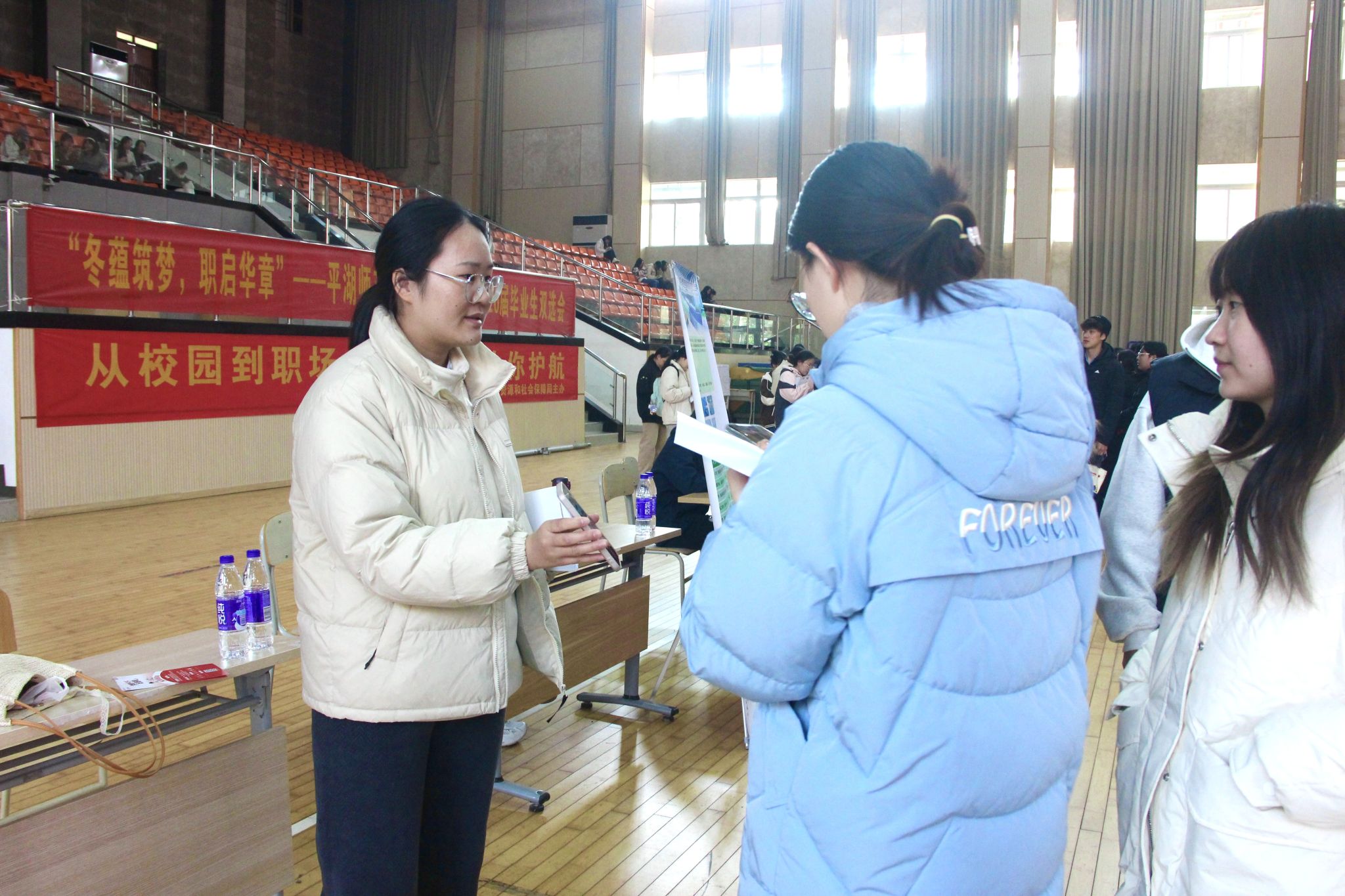 在双选会现场,不仅有企业与学生的热烈交流,还有来自平湖人社局的工作人员提供政策咨询。他们耐心细致地解答学生们关于就业政策、创业扶持等方面的疑问,提供全面而实用的信息支持。