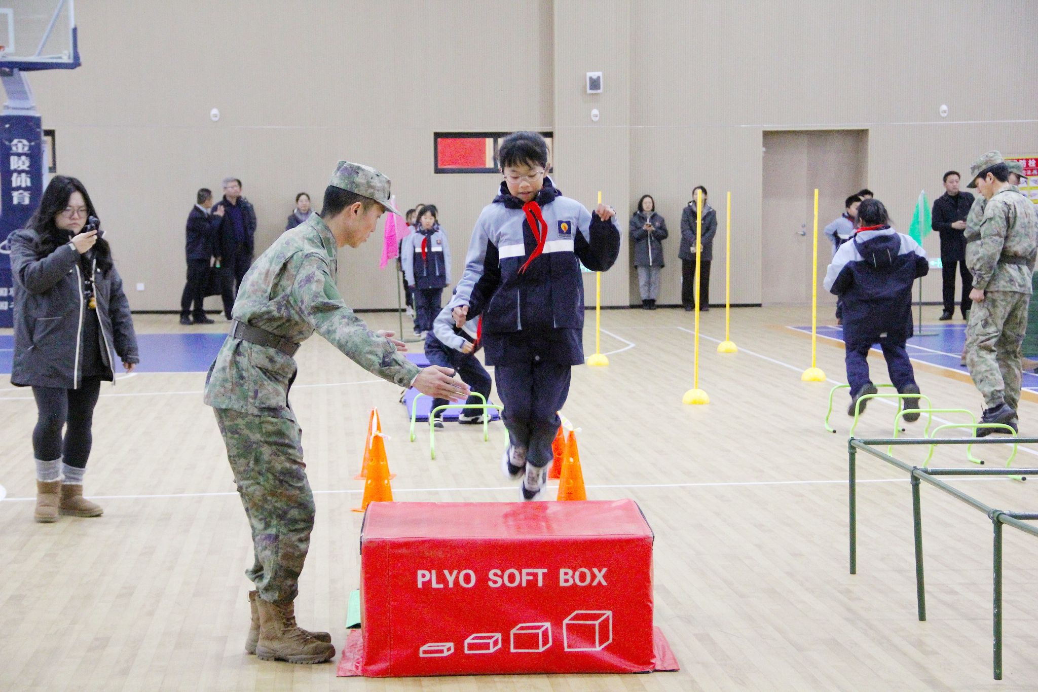 与会人员还实地观摩了嘉兴大学附属实验学校大课间国防教育活动,参观了嘉兴大学红船精神育人成果展示馆。