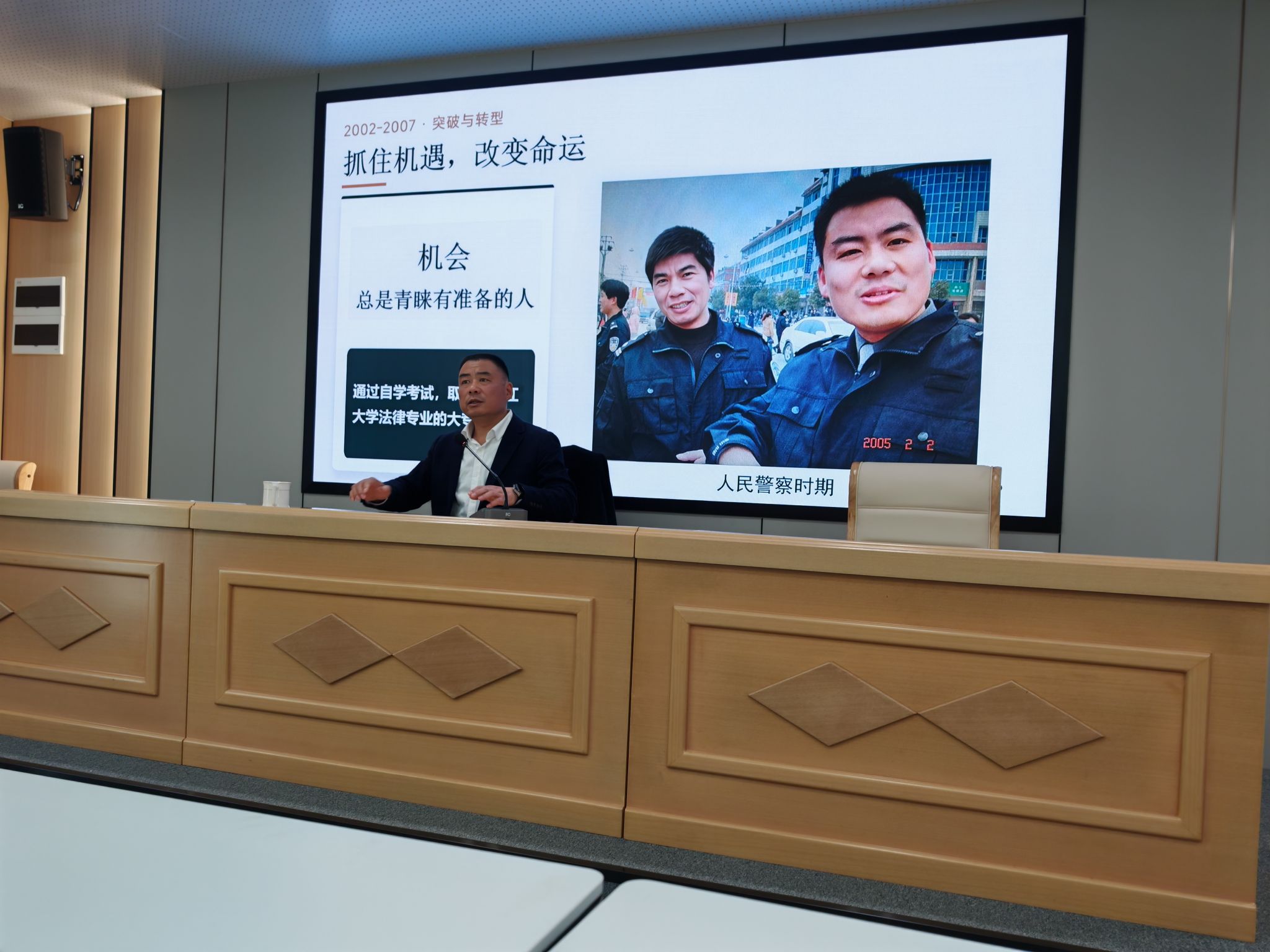 陈志彪结合个人从军经历与退役后的奋斗历程,分享了从基层成长至领导岗位的心得体会。他勉励在场退伍军人学生永葆初心、勤学不辍、提升自我;常怀善念、乐于奉献、服务社会;坚守军人优良作风,在新的人生阶段勇当先锋、持续奋斗,在投身体育教育事业与社会发展的新征程中创造佳绩、实现价值。
