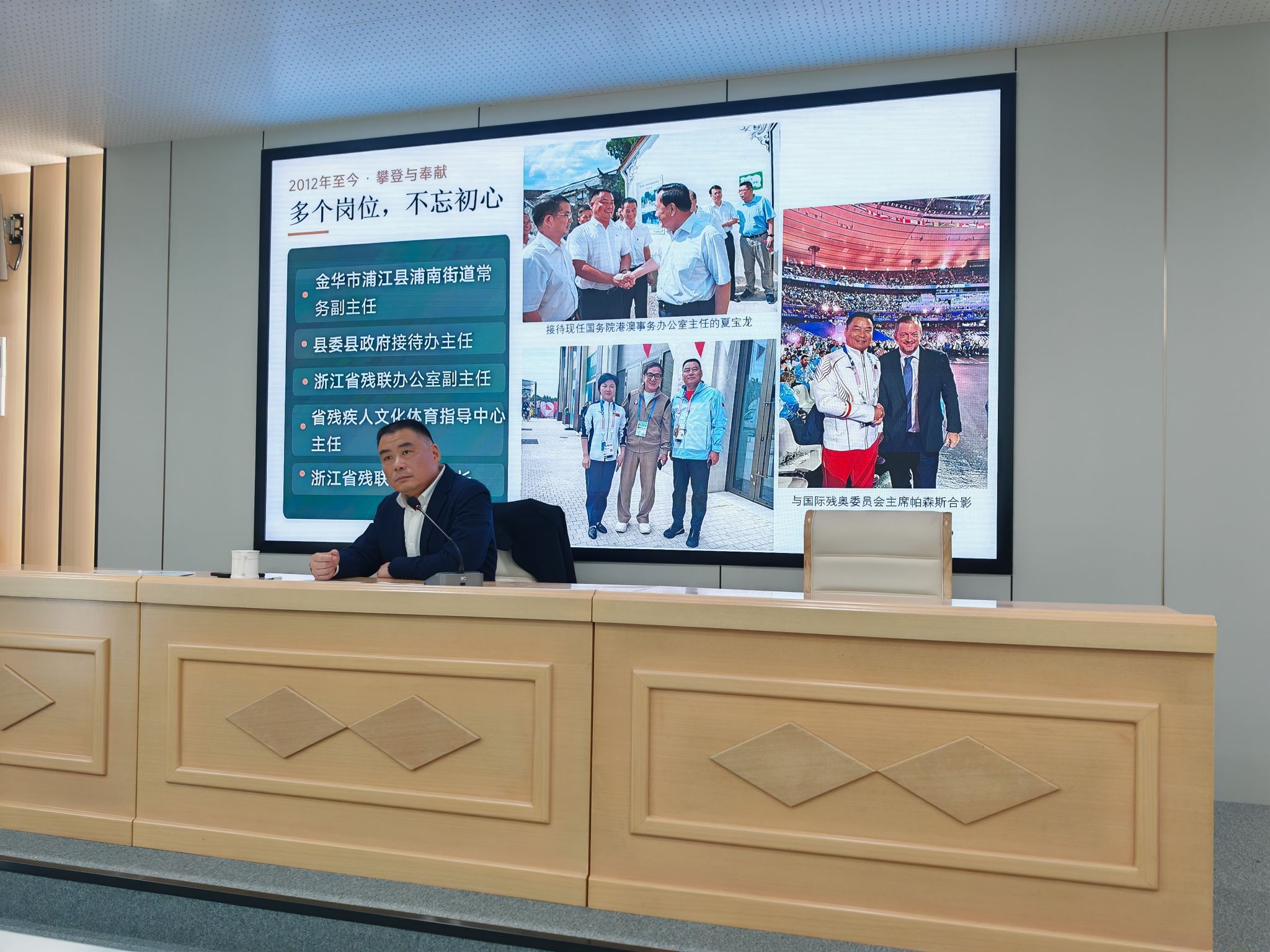 陈志彪于1994年退役后,始终保持军人本色,扎根基层、自强不息。从返乡创业、担任辅警起步,他坚持刻苦自学,先后取得法学专科学历、浙江大学法学本科学历,并考入正式警察编制。他陆续担任街道办副主任、县委接待办主任等职务,后经选拔调任浙江省残联办公室副主任,历任省残疾人文化体育指导中心主任、宣传文化体育部部长。在省残联文体中心任职期间,他深入基层选拔培养残疾人运动员,为浙江省在杭州亚残运会、巴黎残奥会及粤港澳全国残运会中取得优异成绩奠定了坚实基础。