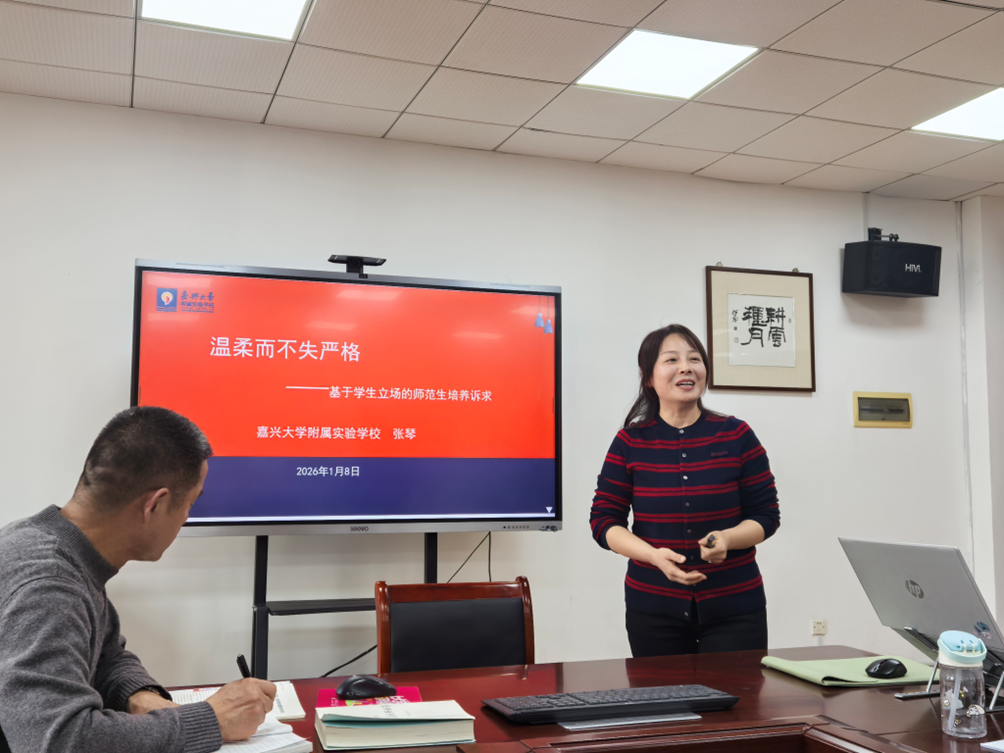 嘉兴大学附属实验学校校长张琴以“温柔而不失严格——基于学生立场的师范生培养诉求”为主题,分享了从基础教育一线反观师范生培养的观察与思考。强调师范生的培养应更加注重教育情怀的培育、实践能力的锻造以及学生主体性和个性化需求的深刻理解,引发了与会教师的强烈共鸣。